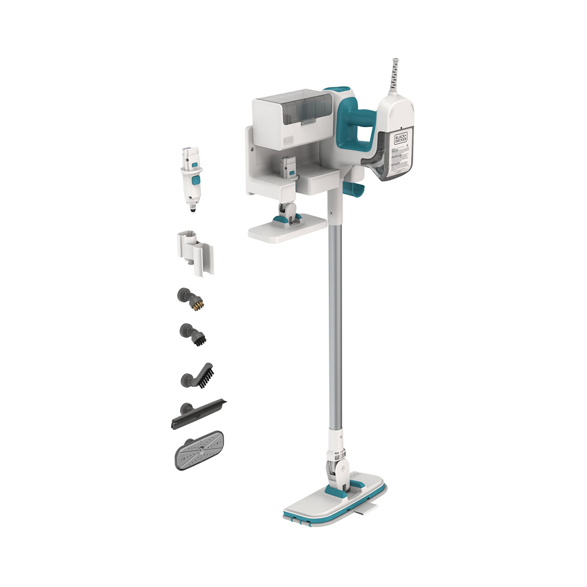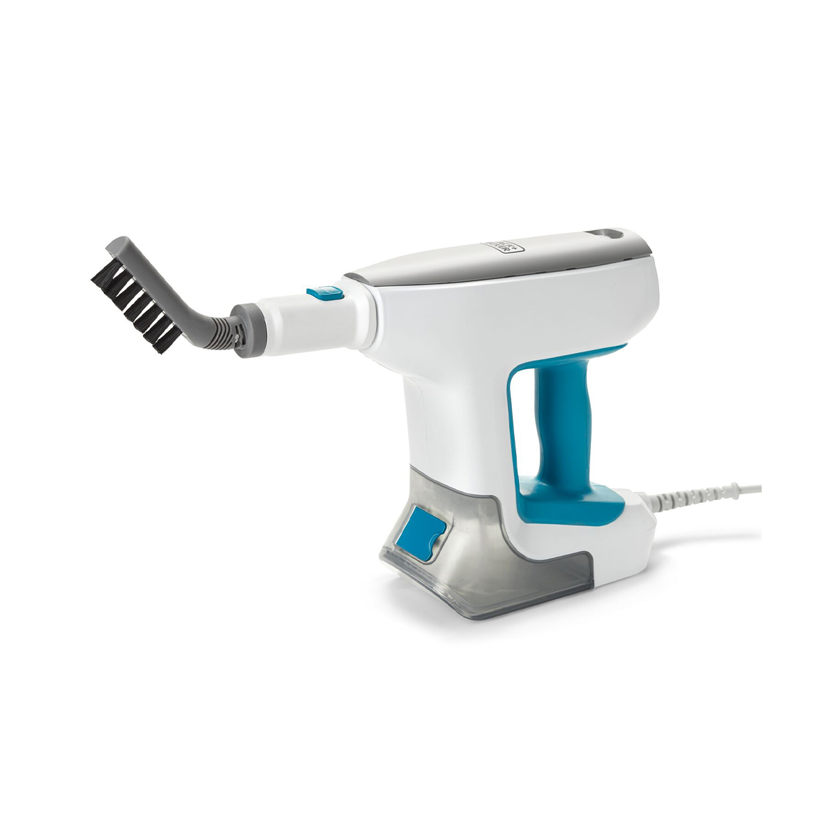 Der BLACK+DECKER 1500W Handdampfreiniger SteamSystem™ mit umfangreichen 10-tlg. Zubehör bringt neuen Glanz in dein Zuhause. Durch seine verschiedenen Aufsätze eigent er sich zum Reinigen des gesamten Hauses – Böden, Polster, Arbeitsflächen, Armaturen, Öfen, Grillgitter, Fugen, Spiegel, Glas und sogar zum Glätten von Kleidungsstücken. Der flexible Wischkopf und die schwenkbare Bodenverlängerung garantieren maximale Beweglichkeit beim Reinigen. So kannst du gründlich über jede Fläche und in jeder Ecke wischen. Die duale Dampfsteuerung ermöglicht ein Anpassen des Dampfausstoßes entsprechend des Verschmutzungsgrades. Er beseitigt 99,9% der Haushaltskeime und -bakterien ohne Einsatz chemischer Reinigungsmittel. Zum Aufbewahren für den nächsten Einsatz kannst du den Handdampfreiniger ganz einfach in die Wandhalterung hängen.
