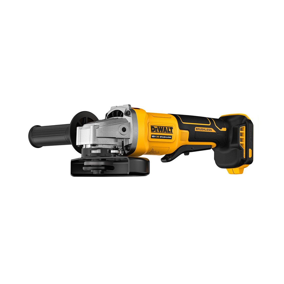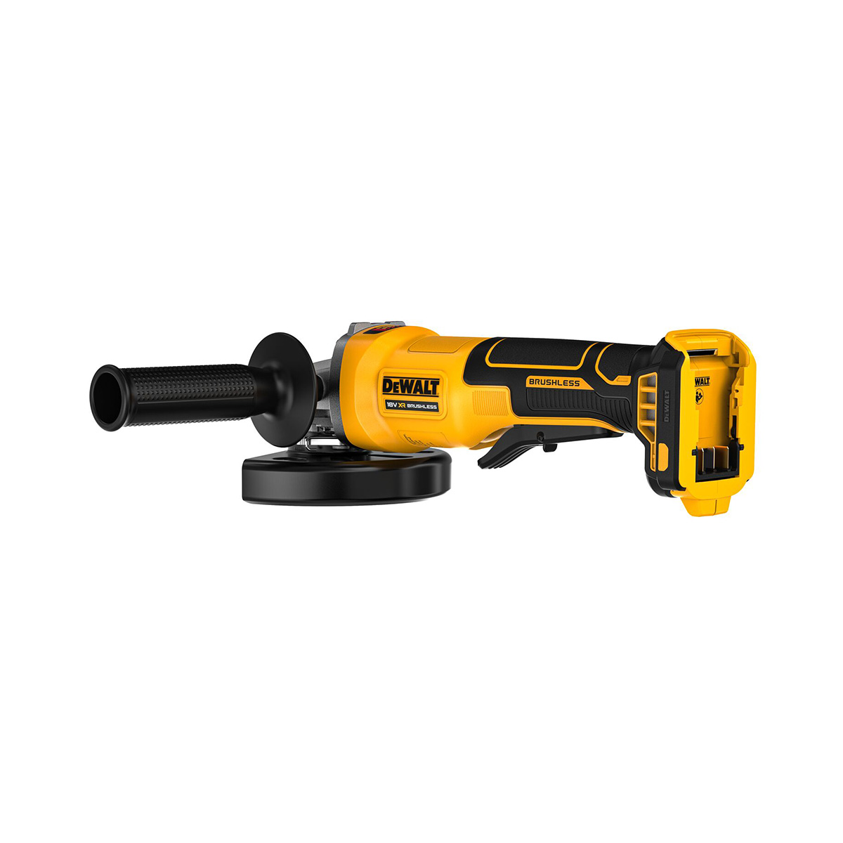 125 mm Akku-Winkelschleifer mit 9000 rpm, bürstenlosem Motor und XR FLEXVOLT Kompatibilität. Mit Kickback-Schutz und 1,6 kg Gewicht.