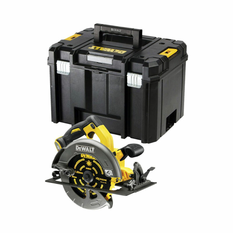 Hochleistungskreissäge, die mit der gesamten Palette der 54V XR FlexVolt-Geräte kompatibel ist. Bürstenloser 1500-W-Motor mit Ganzmetallgetriebe. Robuste Konstruktion Aluminiumbasis und Schutz. Totalschnittschutz /cut-Away guard /, LED-Licht und Staubgebläse sorgen für eine hervorragende Sichtbarkeit der Schnittlinie. Der Hebel für die schnelle Tiefeneinstellung und die schnell einstellbare Abschrägungslehre mit geprägter Skala und automatischen Arretierungen verbessern die Einfachheit und Genauigkeit der Einstellung der Abschrägung. Sicherheitsverriegelungsknopf verhindert versehentliches Einschalten. Luftschleusen-kompatible Staubabsaugung für den Profi. Übergeformte Griffe verbessern die Ergonomie. Am Bord-Werkzeugspeicher für Klingenschlüssel. Kann bis zu 128 Schnitte von 100 x 50 mm Weichholz schneiden und liefert 90 m Schnitt in 18 mm OSB-Platine mit einer einzigen 6-Ah-Batterieladung (Batterie nicht im Lieferumfang enthalten). Ideal für Dachdecker und Gestalter.