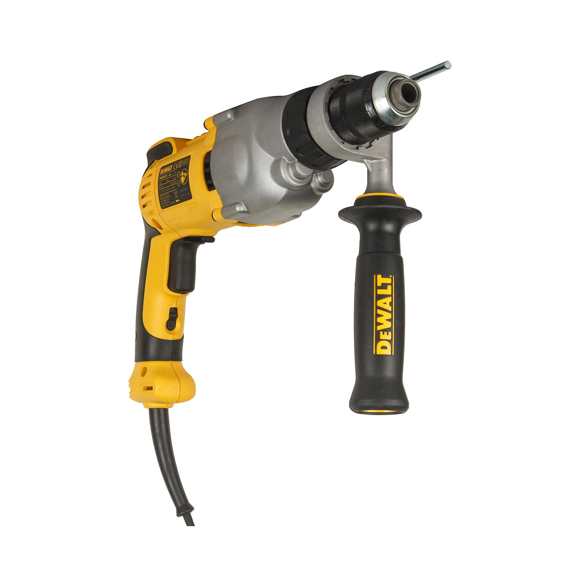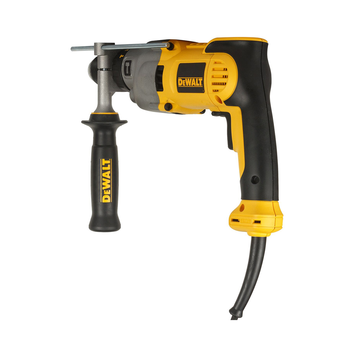 Die DeWalt DWD524KS-QS ist eine kabelgebundene Schlagbohrmaschine mit 1100 W Leistungsaufnahme, ausgelegt für dauerhafte Belastung im Installations- und Rohbaubereich. Das mechanische 2-Gang-Getriebe ermöglicht die Anpassung zwischen drehmomentstarken Anwendungen und hohen Drehzahlen für kleinere Bohrdurchmesser. Das zuschaltbare Schlagwerk generiert eine hohe Schlagzahl für effizientes Bohren in Mauerwerk. Das Vollmetall-Getriebegehäuse verbessert die Wärmeableitung und reduziert Verschleiß bei kontinuierlichem Einsatz. Das Schnellspannbohrfutter mit bis zu 13 mm Spannweite deckt Standardanwendungen im Stahl- und Steinbereich ab.