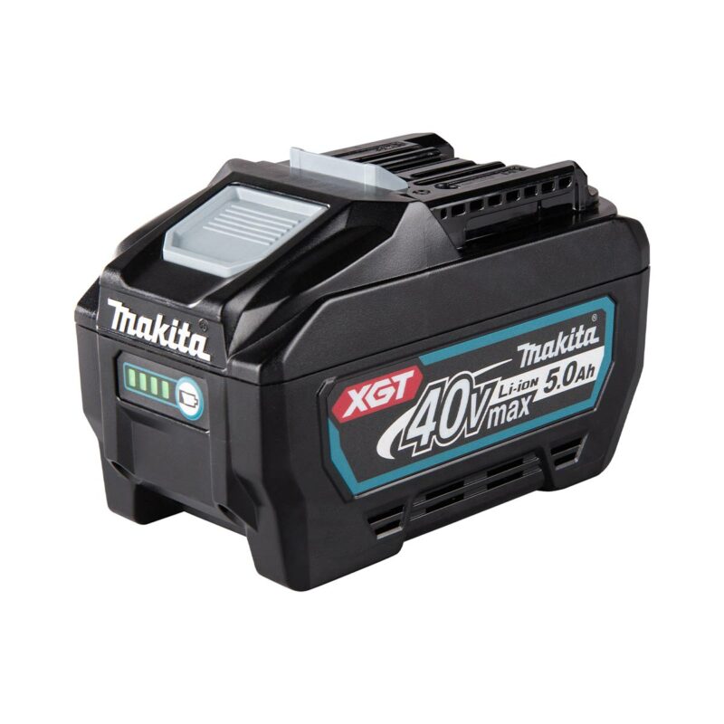 Li-Ionen-Akku der XGT-Serie mit 40 V max und einer Kapazität von 5,0 Ah und 180 Wh. Mit dem Ladegerät DC40RA in 35 Minuten zu 80 % und in 50 Minuten voll geladen. Vier grüne LEDs zeigen die Restkapazität des Akkus an. Der Akku ist für den harten Einsatz unter rauen Bedingungen konzipiert.