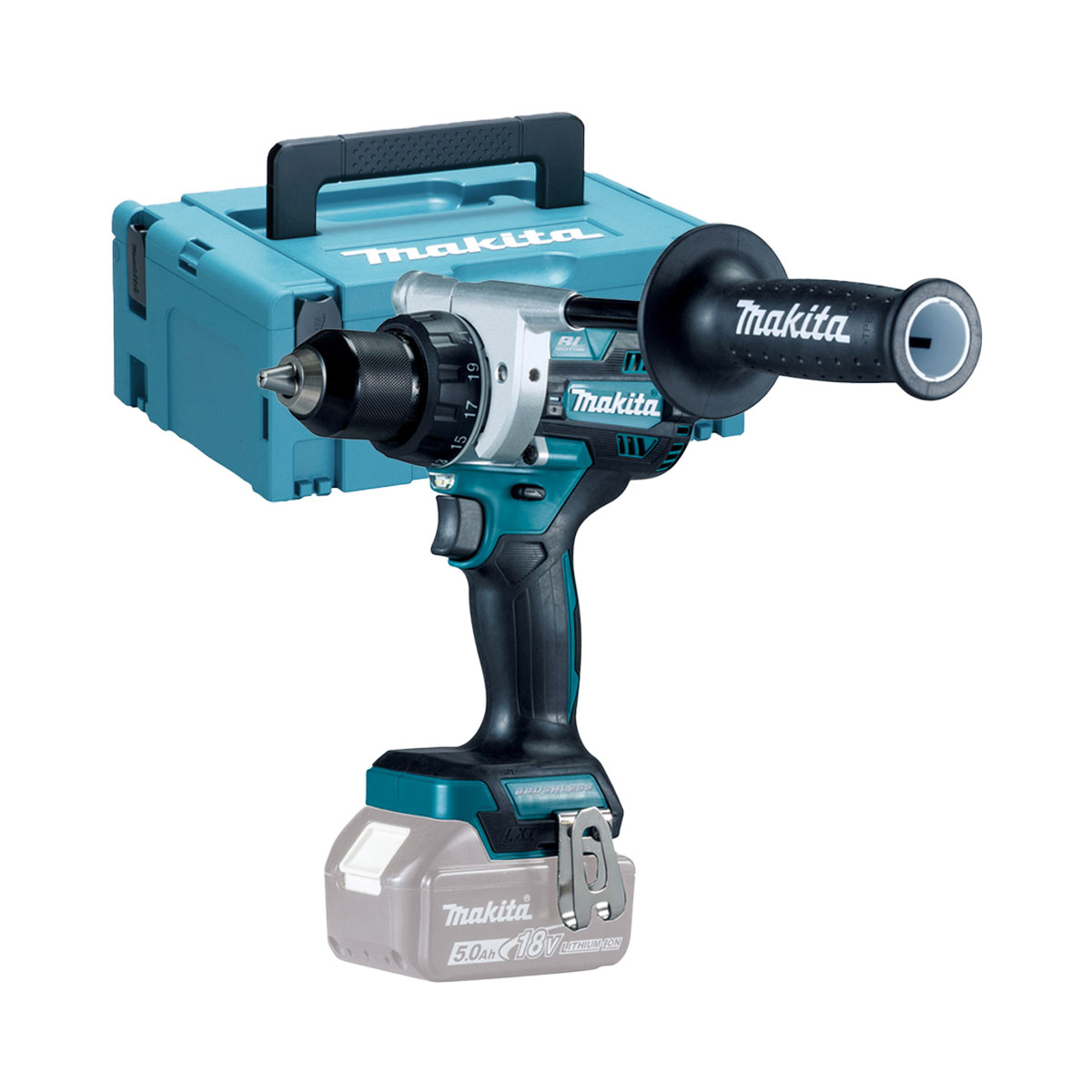 Kraftvoller, sehr kurzer 18 V Akku-Bohrschrauber mit einem 2-Gang-Vollmetall-Planetengetriebe und einem bürstenlosen Motor. Die Maschine ist mit einer 21-stufigen mechanischen Drehmomenteinstellung ausgerüstet. Eine ideale Wahl für Anwendungen, welche ein hohes Drehmoment erfordern. Zusätzlich ist eine leuchtstarke LED mit Nachleuchtfunktion verbaut