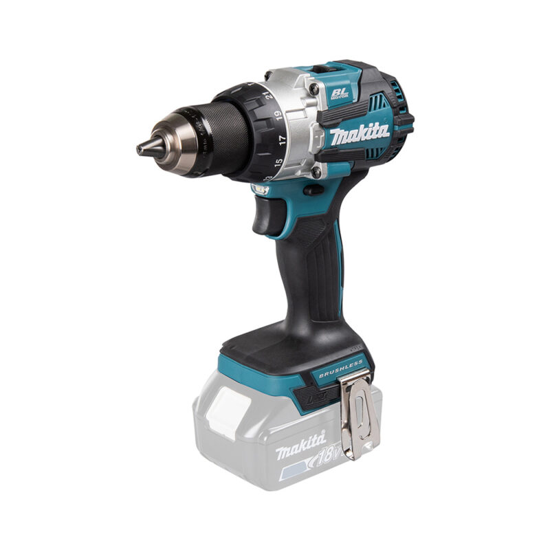 Bürstenloser Akku-Schlagbohrschrauber mit 18 V und einem neu konstruierten Getriebe mit sehr kurzer Bauform. Das Drehmoment von 73 Nm lässt sich in 21 Stufen einstellen. Eine leuchtstarke Doppel-LED sorgt für gute Sicht. Mit eingeschaltetem Schlagwerk sind Bohrungen in Mauerwerk bis 16 mm ø möglich. In Holz können Löcher bis 38 mm ø gebohrt werden.