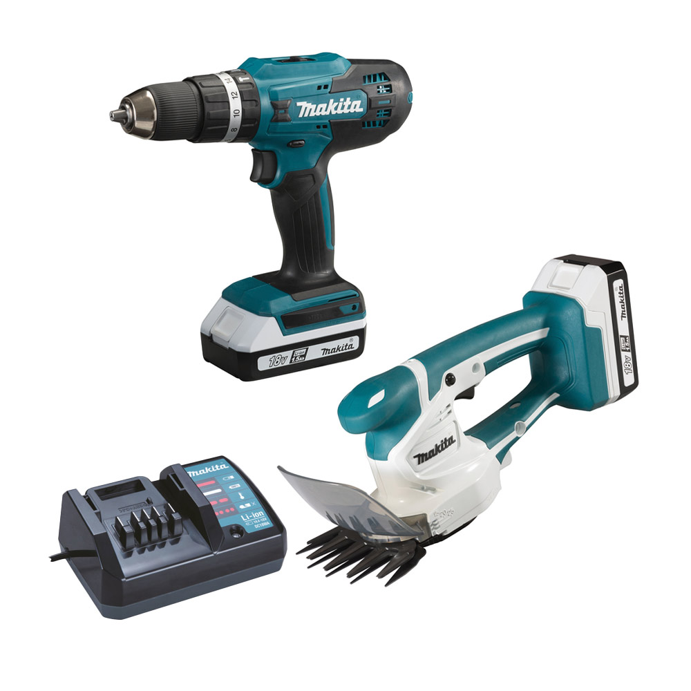 Ein hochwertiges zweiteiliges kabelloses 18 V Set für zahlreiche Anwendungen. Enthält den Schlagbohrschrauber HP488D und die Grasschere UM110D. Die Maschinen sind nicht kompatibel mit den Akkus der 18 V LXT Serie.