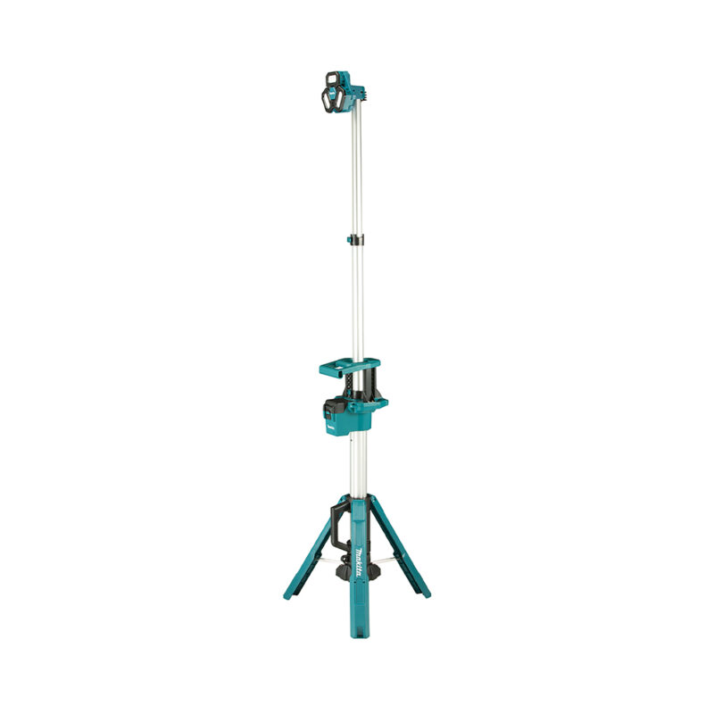 Die Leuchtdauer beträgt je nach Leuchtstärke: 3 – 10 Stunden mit 1x 5,0 Ah Akku (18 V). Die drei verstellbare Leuchtköpfe ermöglichen eine Punkt- oder Flächenbeleuchtung. Schutzklasse IP55 gegen Staub und Wasser. Für optimale Positionierung zwischen 1.250 – 2.240 mm höhenverstellbar. Auch zusammenklappbar für leichten Transport und Lagerung.