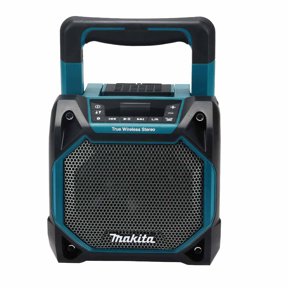 Robuster Bluetooth-Lautsprecher mit Display und IP64-Schutzklasse. Kann mit bis zu 10 gleichen Lautsprechern zu einer Wiedergabequelle verbunden werden. Energieversorgung über 12 V max CXT oder 18 V LXT Akkus sowie dem mitgelieferten Netzteil möglich. Bluetooth-, AUX- und USB-Verbindung, letzteres zum Aufladen des Smartphones.