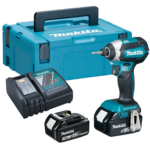 Der Akku-Schlagschrauber Makita DTD153 verfügt über einen bürstenlosen ( DC ) Gleichstrommotor, der die Laufzeit pro Batterie um etwa 30% und praktisch wartungsfrei verbessert. Dies ist ein voll professionelles Gerät mit genügend Drehmoment für selbst die anspruchsvollsten Aufgaben. Zu den Merkmalen des DTD153 gehören ein Schnellwahl-Schiebefutter /one-touch sliding chuck/ für schnellen Bitwechsel, eine LED-Arbeitsleuchte für bessere Sichtbarkeit und ein gummigegossener Griff für besseren Halt.