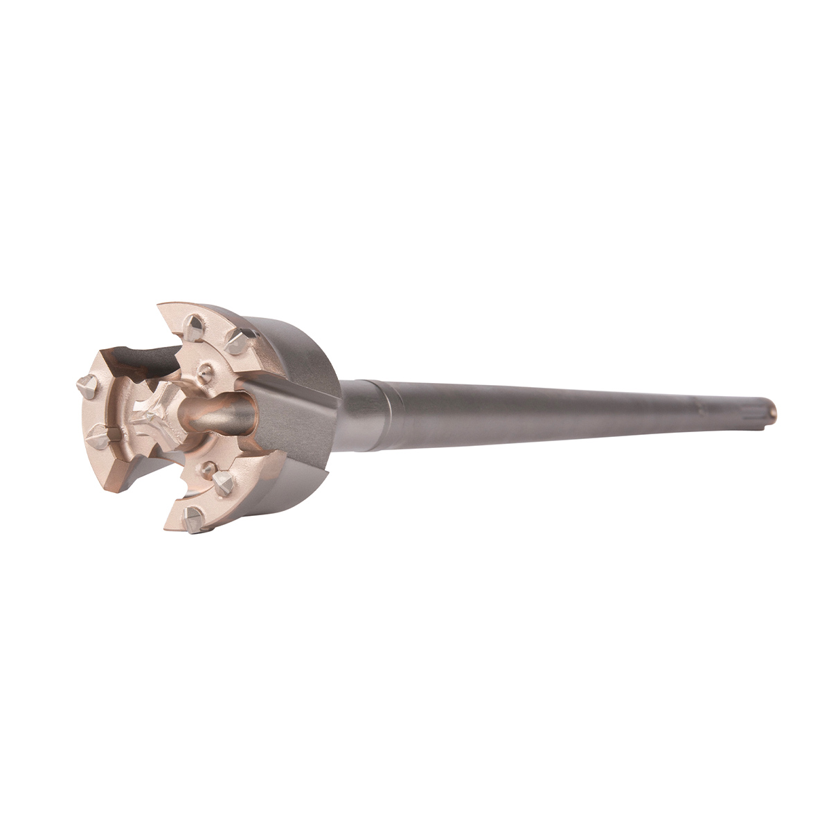 Der Bohrer mit SDS-MAX-Schaft ist zum Bohren von Löchern mit großem Durchmesser konzipiert. Die Bohrspitze mit Wolframkarbidschneiden ermöglicht ein schnelles Bohren ohne zusätzlichen Zentrierbohrer.