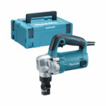Ein schlanker Knabber, der saubere gerade Kanten und kurvenförmige Schnitte ermöglicht. Mit Bügelhandgriff zum idealen Schneiden von z. B. Dachbaustoffen. Eine Schnittleistung bis 3,5 mm in Aluminium und bis 3,2 mm in Stahl. Motorleistung 710 W, Leerlaufhubzahl 1.300 Hübe/min.