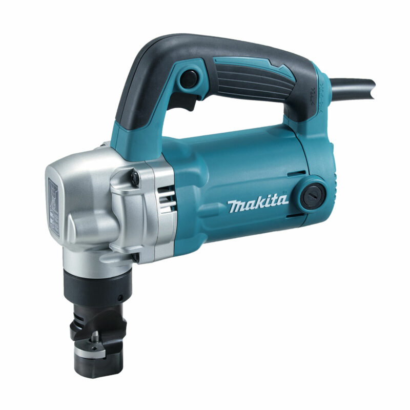 Ein schlanker Knabber, der saubere gerade Kanten und kurvenförmige Schnitte ermöglicht. Mit Bügelhandgriff zum idealen Schneiden von z. B. Dachbaustoffen. Eine Schnittleistung bis 3,5 mm in Aluminium und bis 3,2 mm in Stahl. Motorleistung 710 W, Leerlaufhubzahl 1.300 Hübe/min.