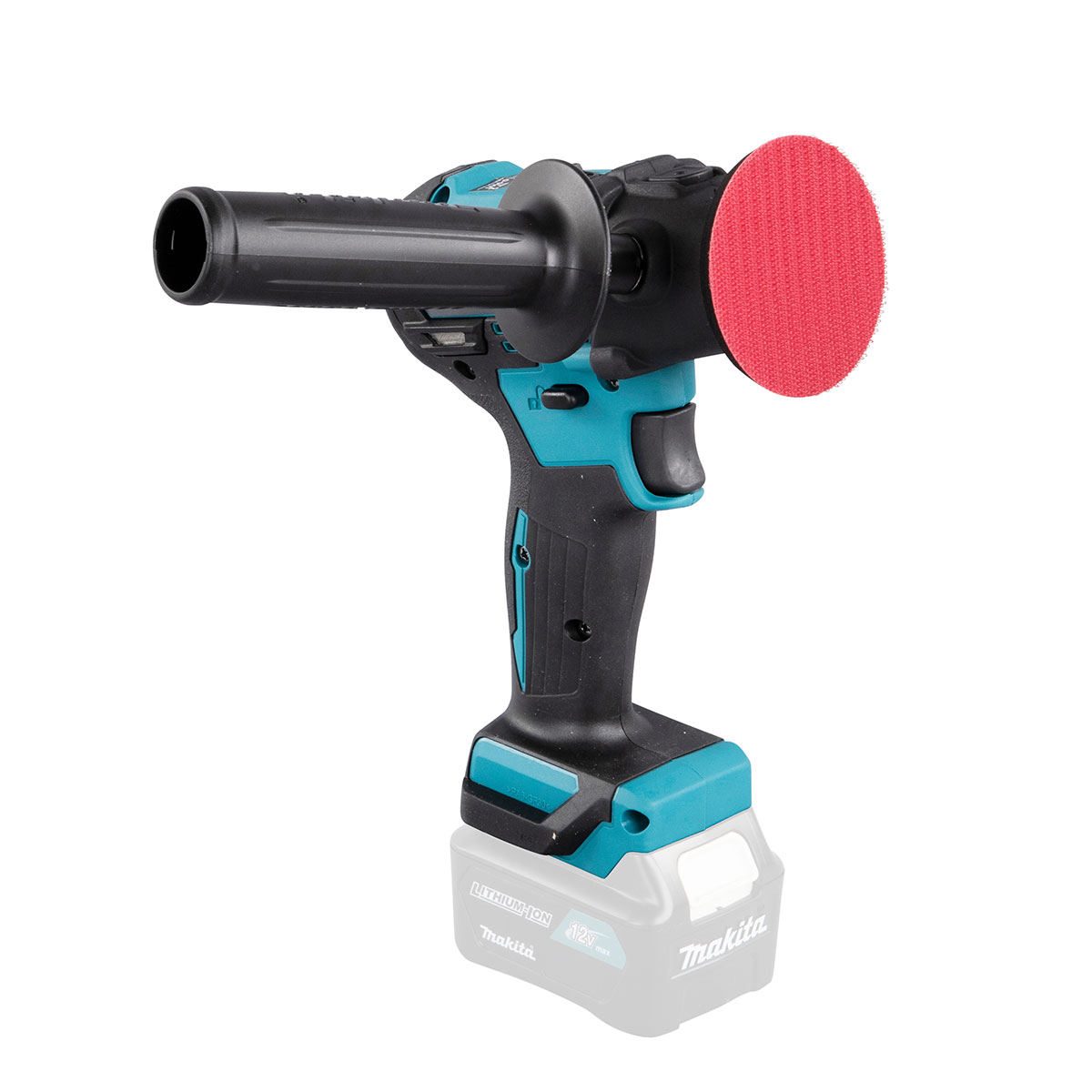 Leichter 12V Polierschleifer mit Schalterarretierung für komfortables arbeiten. Der Seitenhandgriff (im Lieferumfang) kann für eine bessere Führung montiert werden. Das 2-Gang Getriebe ermöglicht je nach Anwendung eine optimale Drehzahl. Die verbauten Staubschutz-Abdeckungen schützt die Maschine vor angesaugtem Schleifstaub und Fremdkörpern.