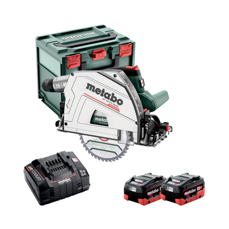 Metabo 601866810 18V KT 18 LTX 66 BL Akku-Tauchkreissäge mit 2x 8Ah Li-HD Akkus, Ladegerät und Koffer