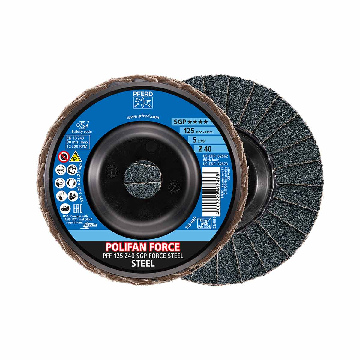 1x 67688124 POLIFAN FORCE Fächerscheibe PFF 125×22,23 mm konisch Z40 Speziallinie SGP STEEL für Stahl, 1 Stück