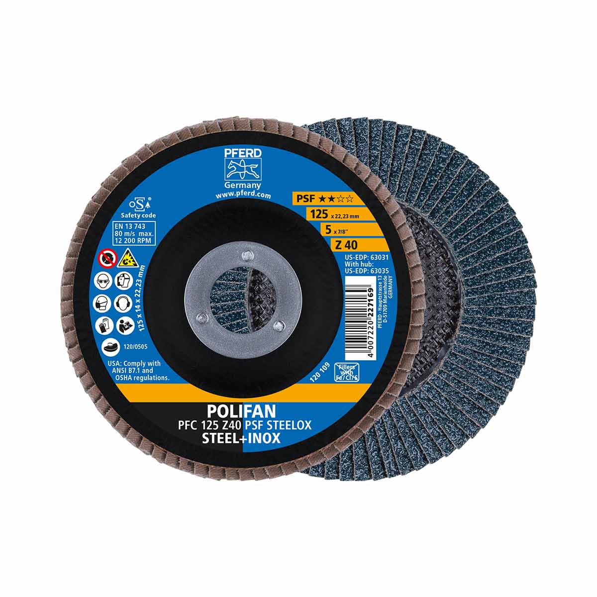 1x 67764125 POLIFAN Fächerscheibe PFC 125×22,23 mm konisch Z40 Uni.-Linie PSF STEELOX Stahl/Edelstahl